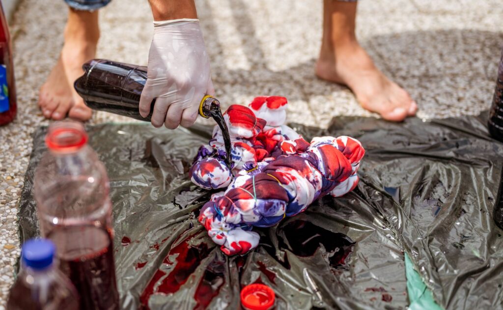 Setelah diwarnai, kain biasanya perlu difiksasi. Proses ini menggunakan bahan kimia seperti fiksatif atau soda abu untuk mengikat pewarna dengan kain. Proses fiksasi sangat penting untuk mencegah pewarna terlepas dari serat kain saat terkena air atau deterjen. Jika tidak dilakukan dengan benar, pewarna hanya akan menempel di permukaan kain dan tidak menyerap sepenuhnya ke dalam serat, membuat kain lebih rentan untuk luntur saat dicuci. Suhu dan durasi fiksasi yang digunakan juga memengaruhi hasil akhir; misalnya, pewarna reaktif biasanya membutuhkan suhu tertentu untuk mengaktifkan ikatan kimia antara pewarna dan serat kain. Oleh karena itu, agar warna kaos tie dye tetap cerah dan tahan lama, sangat penting untuk mengikuti petunjuk fiksasi dengan teliti.