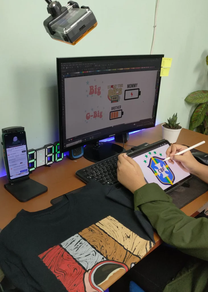 Kami menggunakan bahan kaos 30s cotton combed yang sudah terbukti dan terjamin nyaman saat di pakai serta adem, dan juga jenis sablon menggunakan DTF high performance machine yang jelas tidak mudah luntur sehingga bisa awet di pakai hingga bertahun-tahun.